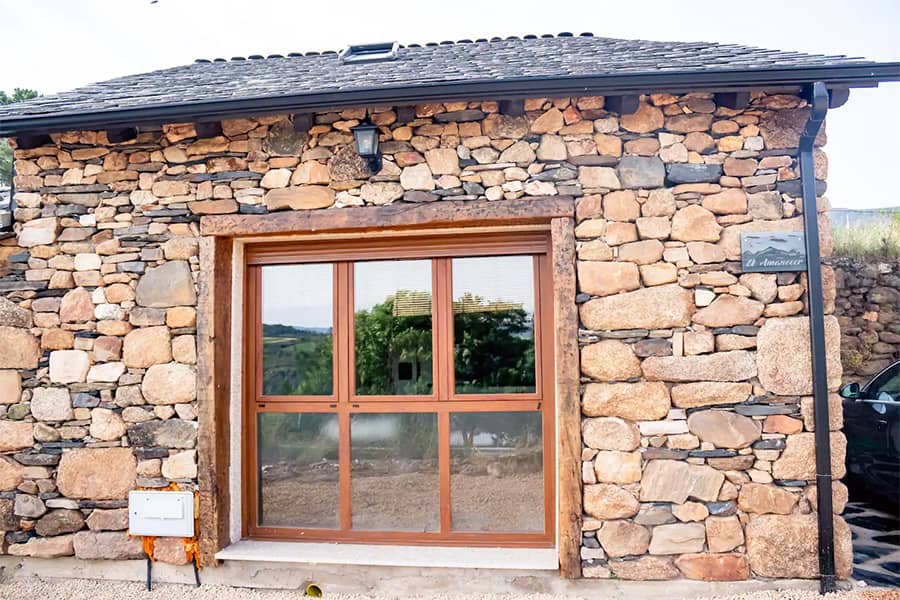 Apartamento turístico reformado de antiga adega con fachada de pedra situado no Camiño de Inverno na Rúa.